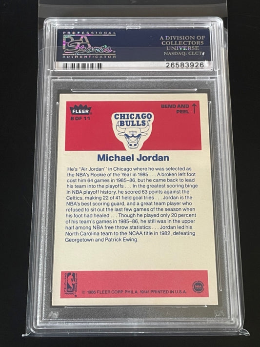 1986 Fleer Sticker Michael Jordan Rookie Card #8 PSA 8