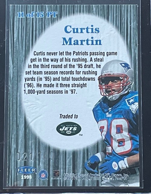 1998 Fleer Tradition Curtis Martin Playmakers Theatre #11 21/100